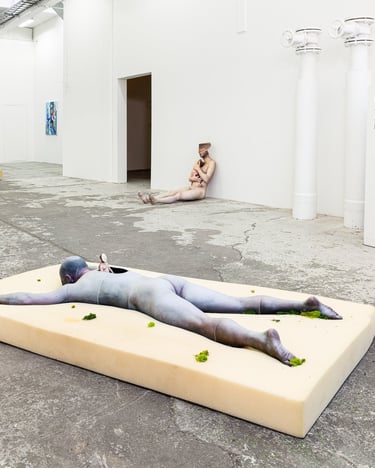 Superposition presents sculptures based on 3D-scans of the artist’s body, where digital errors and physical material merge, reflecting on identity and reality in a data-driven world.
