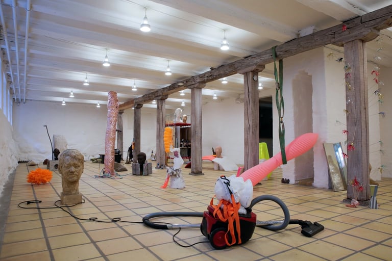 Spielen is part of the solo exhibition De Uønskede. The work brings together the artist’s own sculptures with busts from the collection of the Danish-German artist Harald Isenstein. Known for both his portrait busts and his playful handling of clay and plaster, Isenstein forms an important point of departure for the work. From this perspective, the artist extends a more informal and exploratory sculptural approach through the creation of new forms.